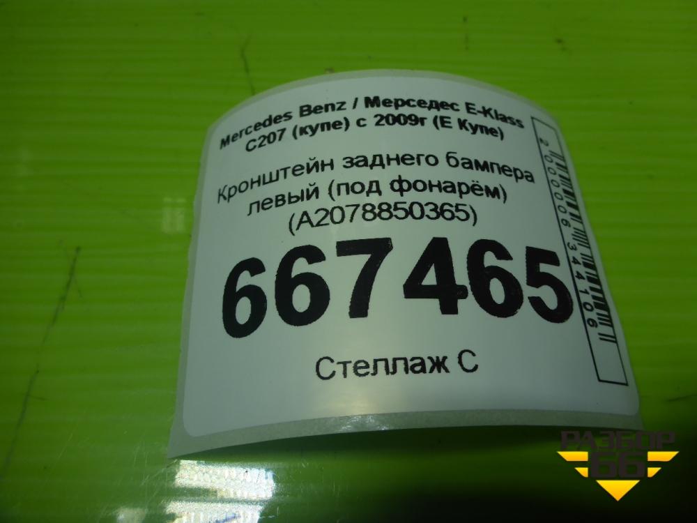 Кронштейн заднего бампера левый (под фонарём) (A2078850365) для Mercedes Benz E-Klass C207 (купе) с 2009г (Е Купе) в Челябинске