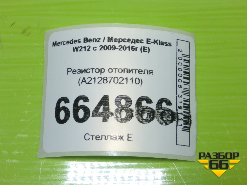 Резистор отопителя (A2128702110) для Mercedes Benz E-Klass W212 с 2009-2016г (Е) в Челябинске