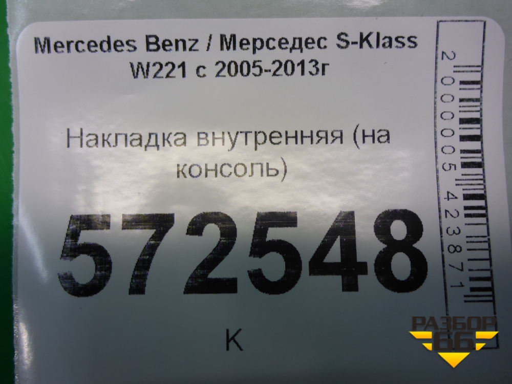 Накладка внутренняя (на консоль) для Mercedes Benz S-Klass W221 с 2005-2013г (С) в Челябинске