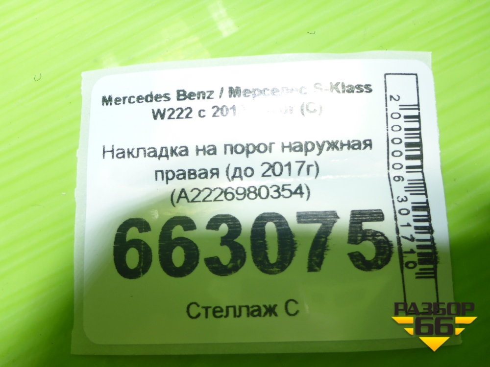 Накладка на порог наружная правая (до 2017г) (A2226980354) для Mercedes Benz S-Klass W222 с 2013-2020г (С) в Челябинске