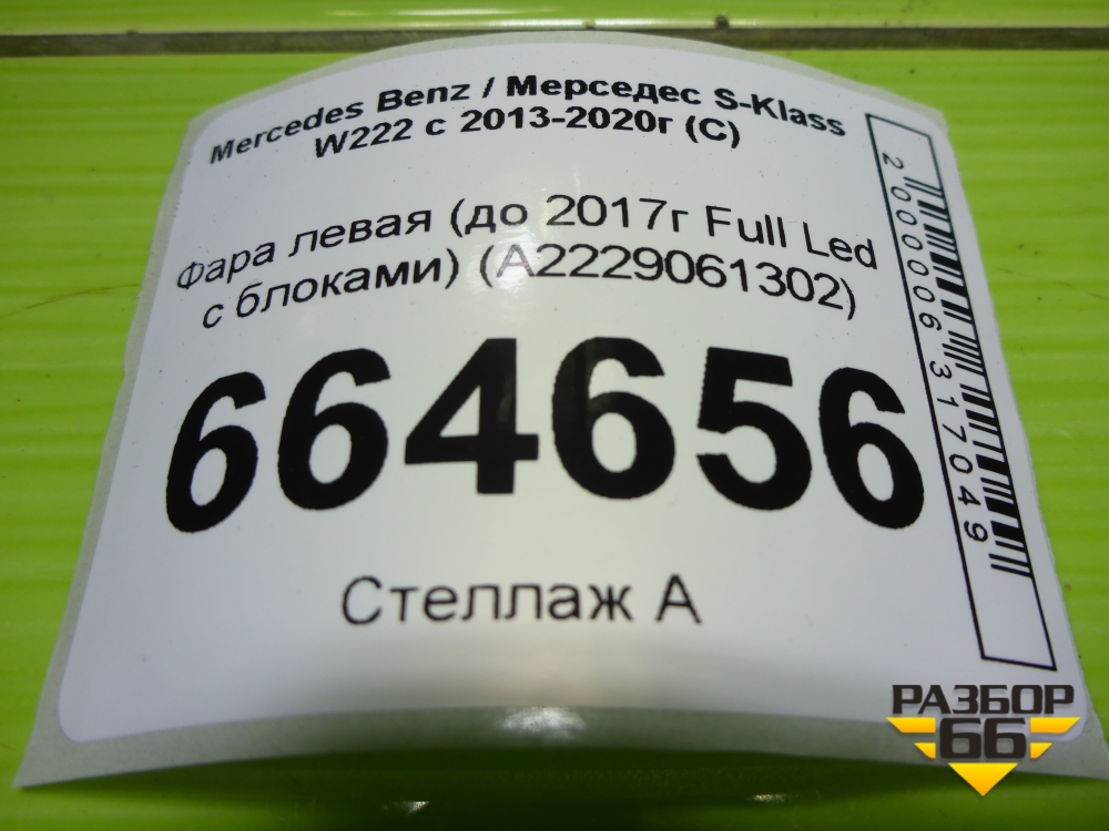 Фара левая (до 2017г Full Led с блоками) (A2229061302) для Mercedes Benz S-Klass W222 с 2013-2020г (С) в Челябинске