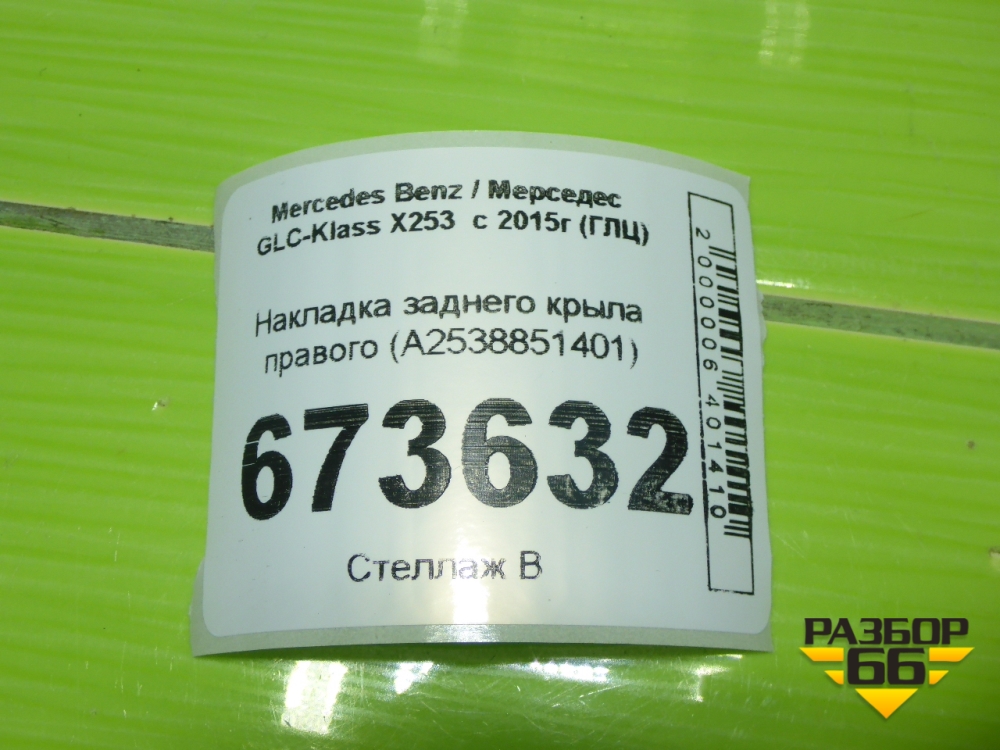 Накладка заднего крыла правого (A2538851401) для Mercedes Benz GLC-Klass X253 с 2015г (ГЛЦ) в Челябинске