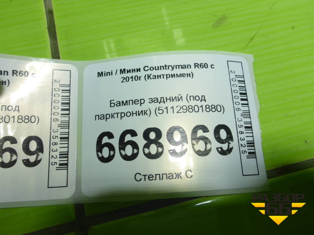 Бампер задний (под парктроник) (51129801880) для Mini Countryman R60 с 2010г (Кантримен) в Челябинске