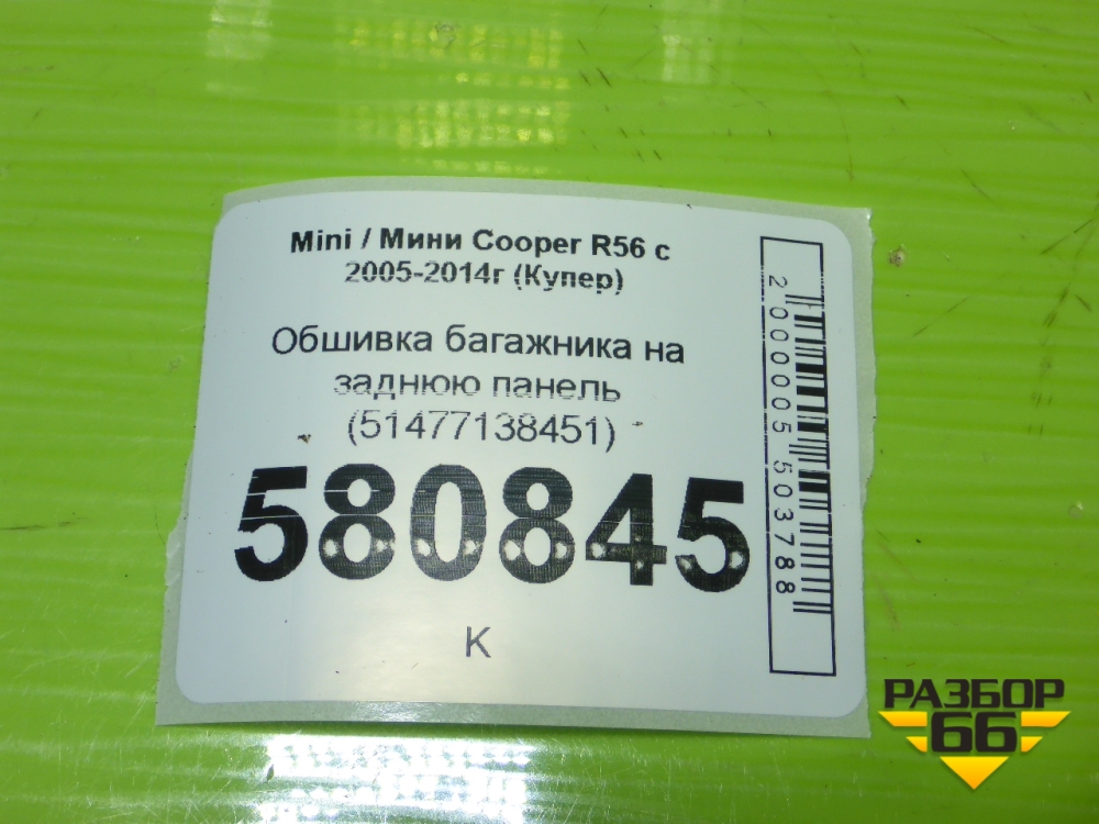 Обшивка багажника на заднюю панель (51477138451) для Mini Cooper R56 с 2005-2014г (Купер) в Челябинске