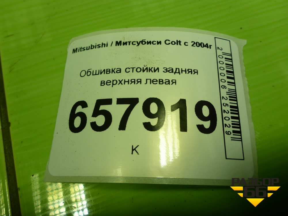 Обшивка стойки задняя верхняя левая (MR951631ZZ) для Mitsubishi Colt с 2004г (Кольт) в Челябинске