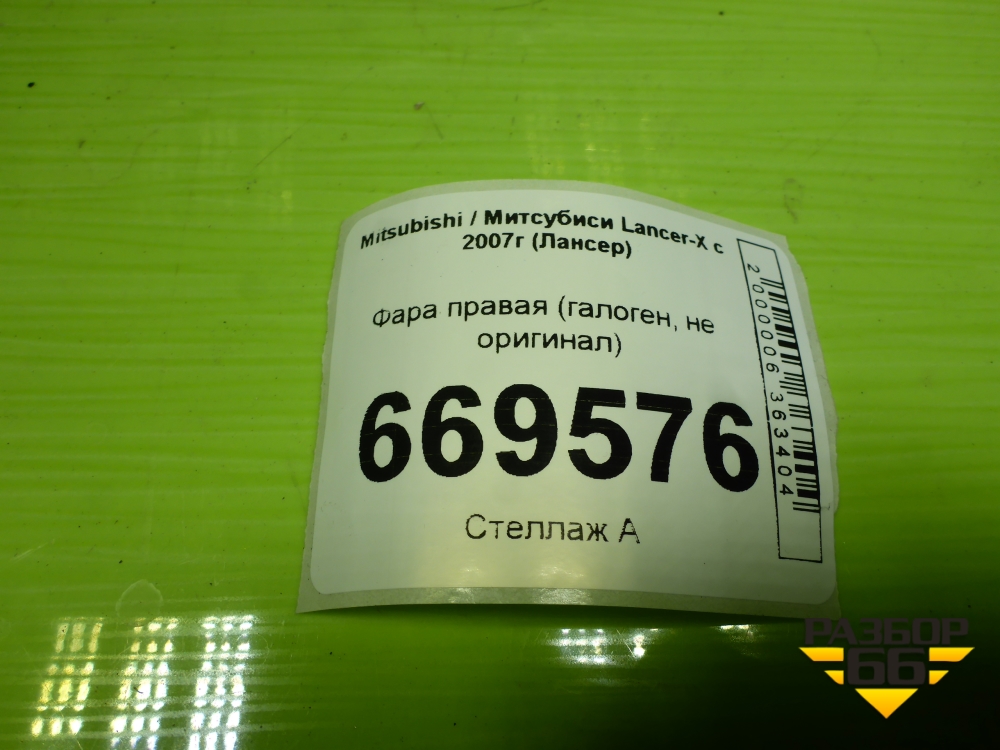 Фара правая (галоген, не оригинал) для Mitsubishi Lancer-X с 2007г (Лансер) в Челябинске
