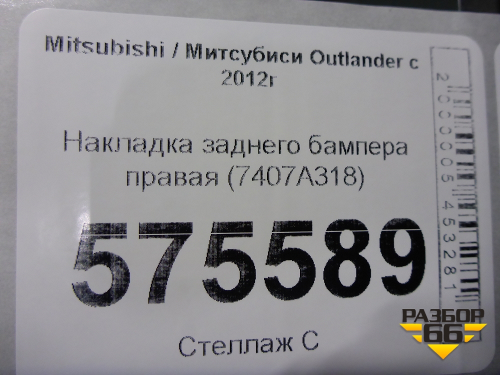 Накладка заднего бампера правая (7407A318) для Mitsubishi Outlander с 2012-2024г (Аутлендер) в Челябинске