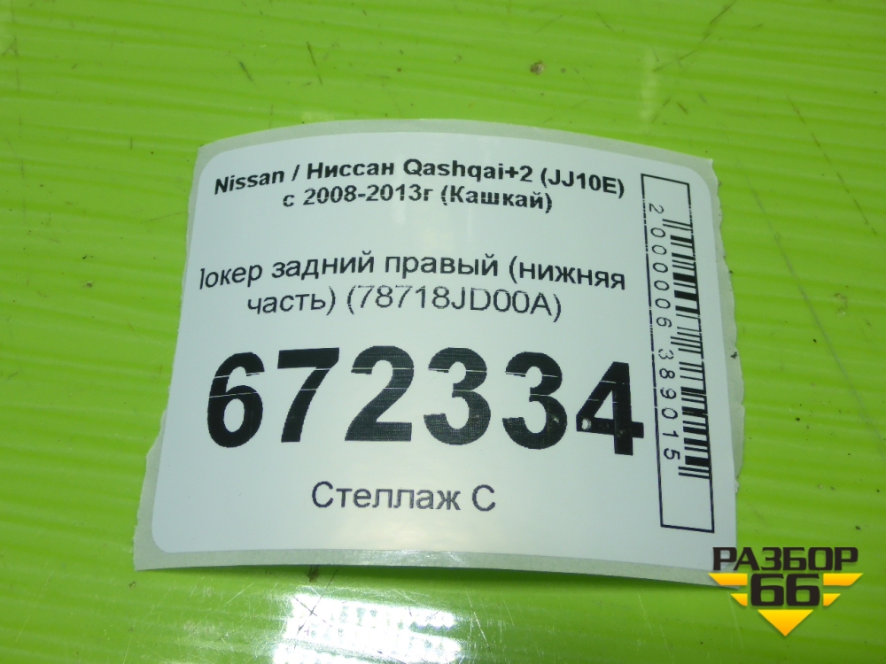 Локер задний правый (нижняя часть) (78718JD00A) для Nissan Qashqai+2 (JJ10E) с 2008-2013г (Кашкай) в Челябинске