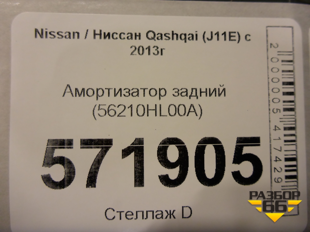 Амортизатор задний (56210HL00A) для Nissan Qashqai (J11E) с 2013г (Кашкай) в Челябинске
