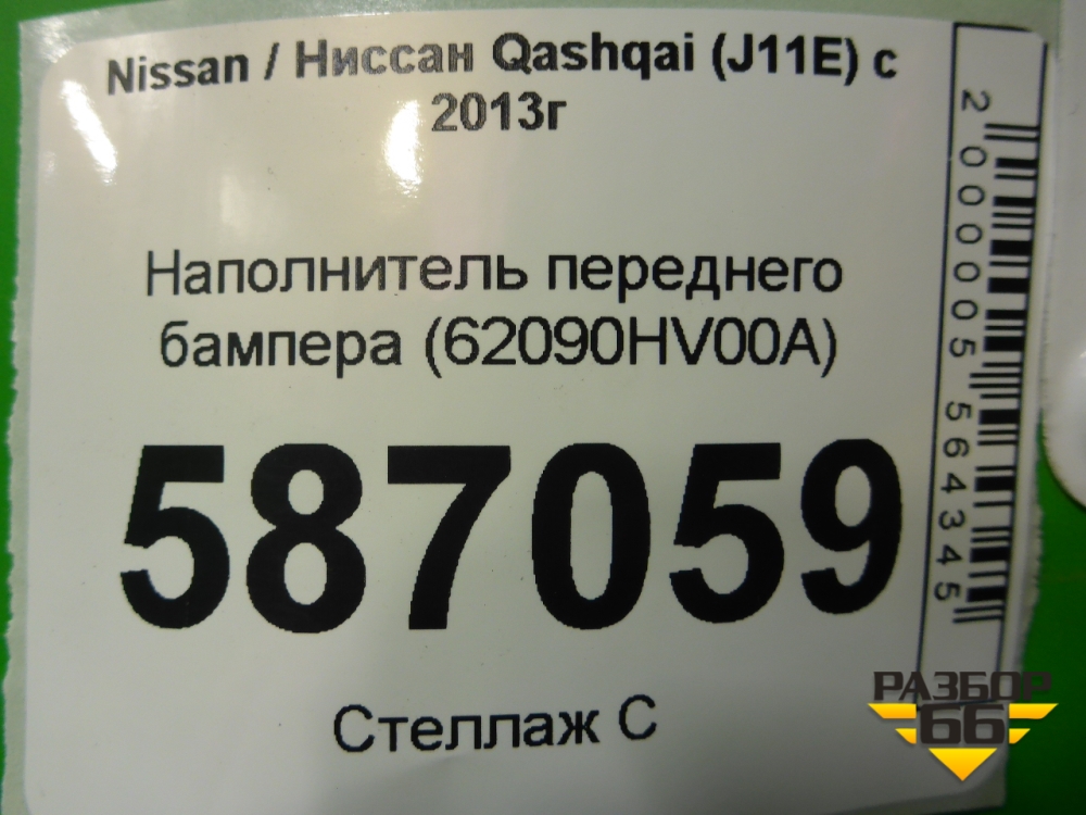 Наполнитель переднего бампера (62090HV00A) для Nissan Qashqai (J11E) с 2013г (Кашкай) в Челябинске