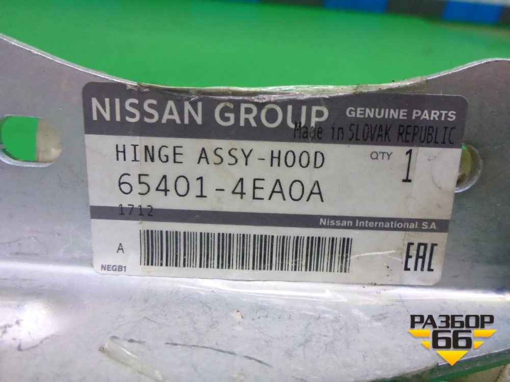 Петля капота левая (новая) (654014EA0A) для Nissan Qashqai (J11E) с 2013г (Кашкай) в Челябинске