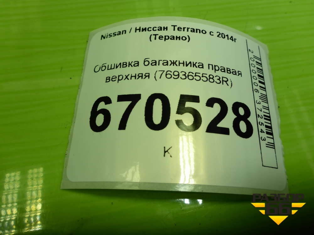 Обшивка багажника правая верхняя (769365583R) для Nissan Terrano с 2014г (Терано) в Челябинске