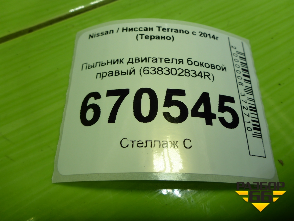 Пыльник двигателя боковой правый (638302834R) для Nissan Terrano с 2014г (Терано) в Челябинске