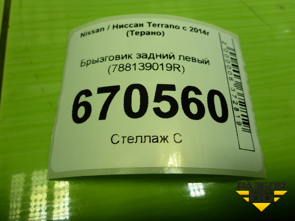 Брызговик задний левый (788139019R) для Nissan Terrano с 2014г (Терано) в Челябинске
