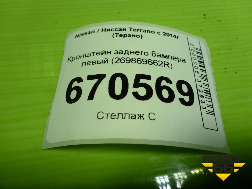 Кронштейн ПТФ левый (269869662R) для Nissan Terrano с 2014г (Терано) в Челябинске