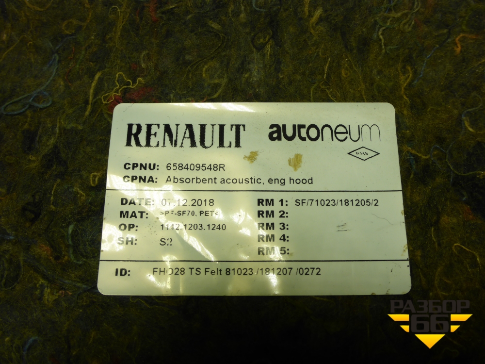 Шумоизоляция капота (658409548R) для Nissan Terrano с 2014г (Терано) в Челябинске