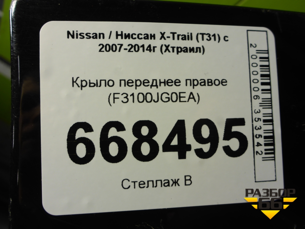 Крыло переднее правое (F3100JG0EA) для Nissan X-Trail (Т31) с 2007-2014г (Хтраил) в Челябинске