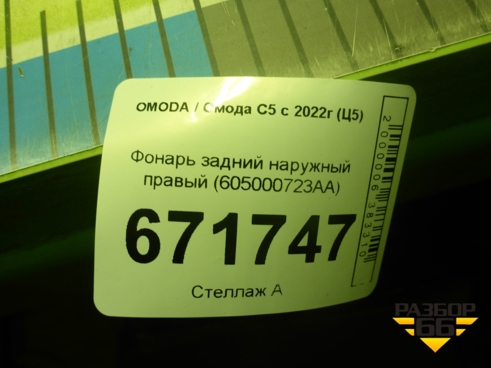 Фонарь задний наружный правый (605000723AA) для OMODA C5 с 2022г (Ц5) в Челябинске