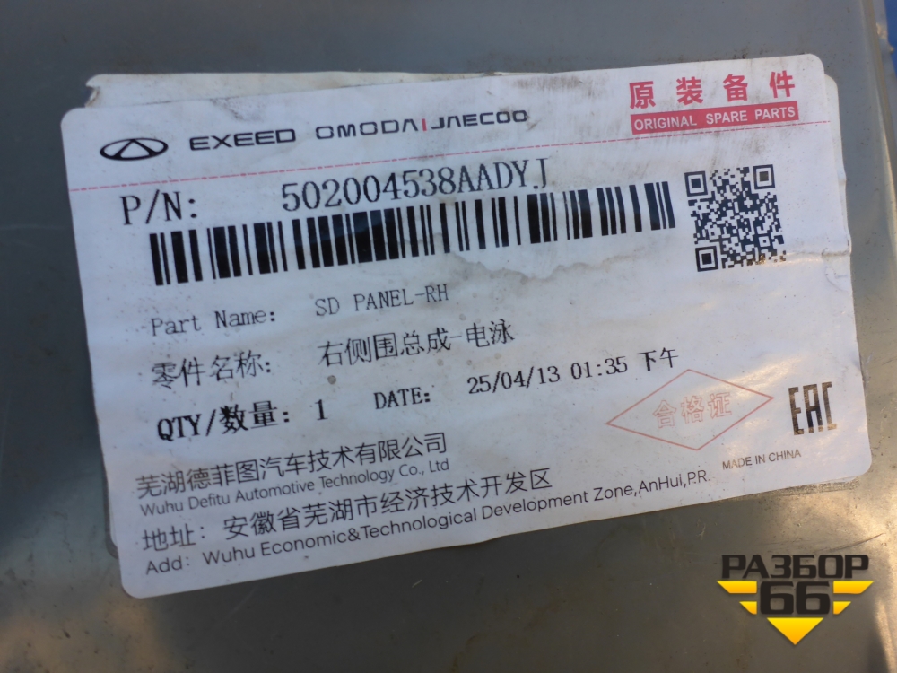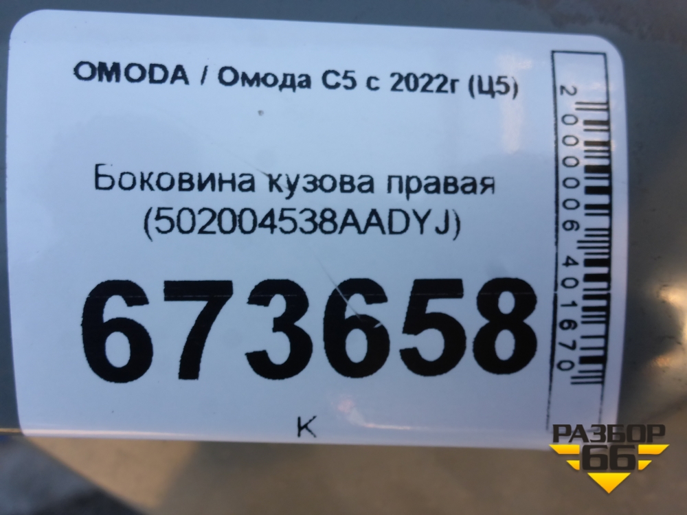 Боковина кузова правая (502004538AADYJ) для OMODA C5 с 2022г (Ц5) в Челябинске