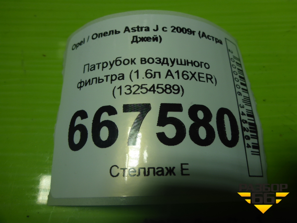 Патрубок воздушного фильтра (1.6л A16XER) (13254589) для Opel Astra J с 2009г (Астра Джей) в Челябинске