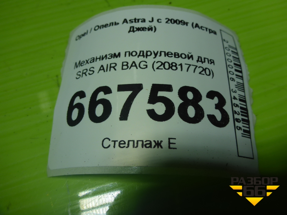 Механизм подрулевой для SRS AIR BAG (20817720) для Opel Astra J с 2009г (Астра Джей) в Челябинске