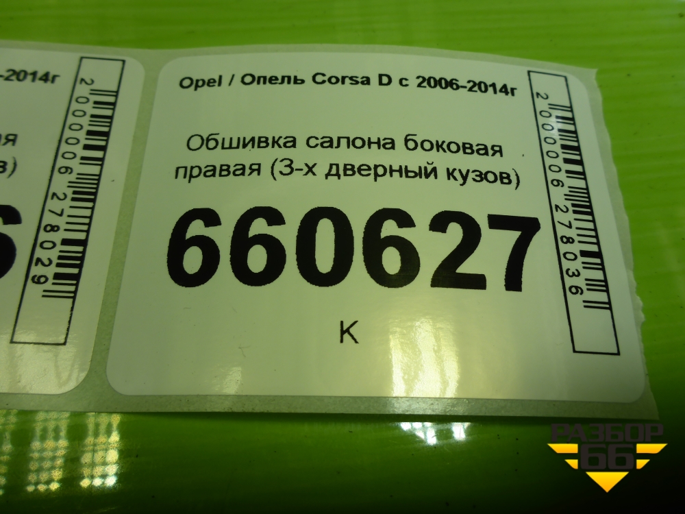 Обшивка салона боковая левая (3-х дверный кузов) (13232713) для Opel Corsa D с 2006-2014г (Корса Д) в Челябинске