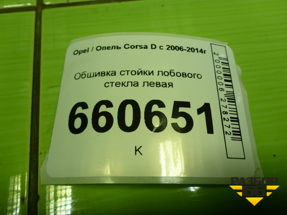 Обшивка стойки лобового стекла левая (13180560) для Opel Corsa D с 2006-2014г (Корса Д) в Челябинске