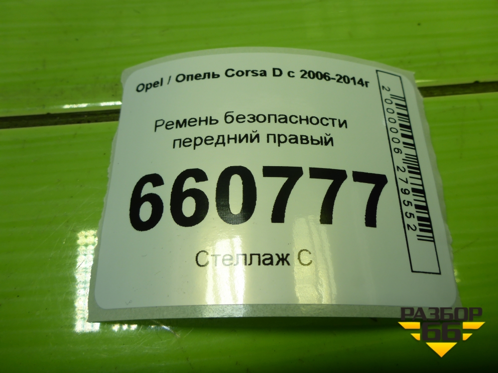Ремень безопасности передний правый (13262569) для Opel Corsa D с 2006-2014г (Корса Д) в Челябинске