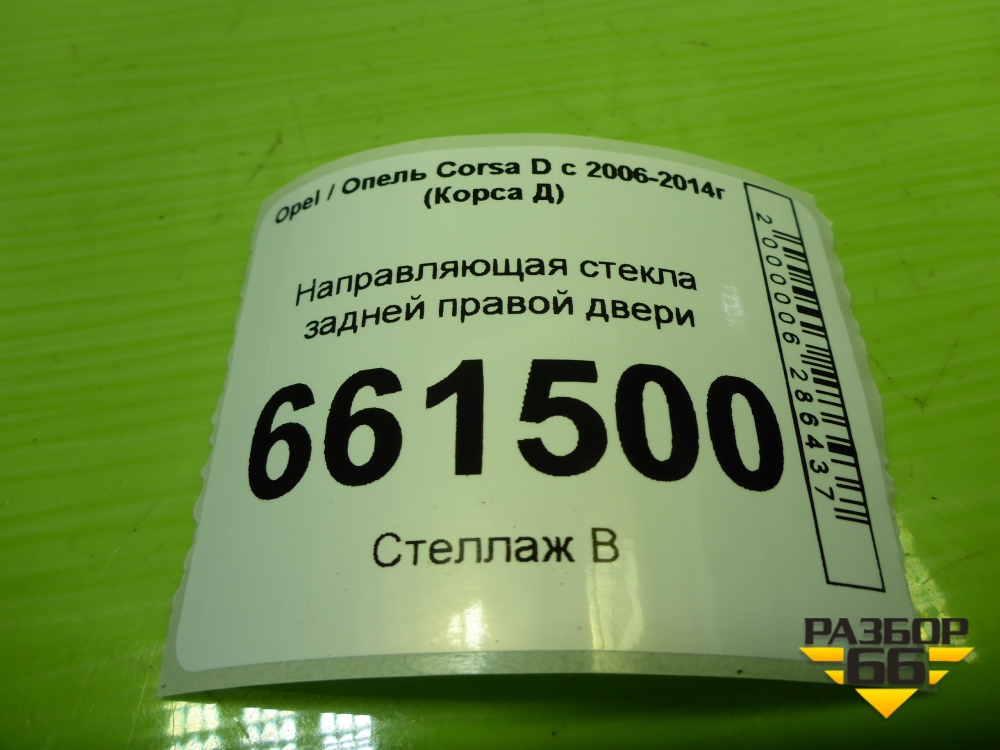 Направляющая стекла задней правой двери (13250353) для Opel Corsa D с 2006-2014г (Корса Д) в Челябинске