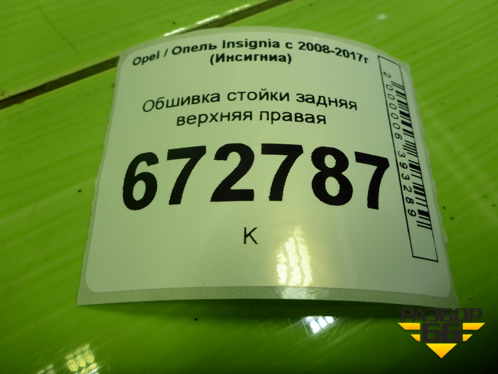 Обшивка стойки задняя верхняя правая (13221260) для Opel Insignia с 2008-2017г (Инсигниа) в Челябинске