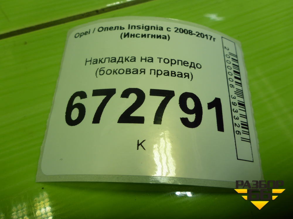 Накладка на торпедо (боковая правая) (13275267) для Opel Insignia с 2008-2017г (Инсигниа) в Челябинске