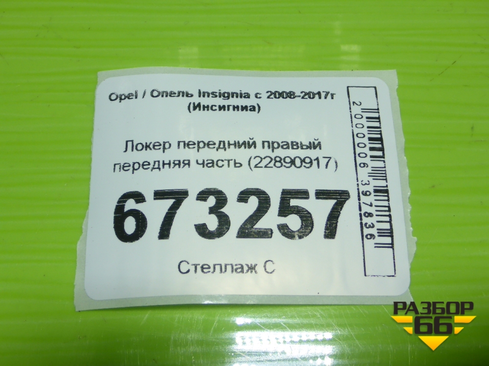 Локер передний правый передняя часть (22890917) для Opel Insignia с 2008-2017г (Инсигниа) в Челябинске