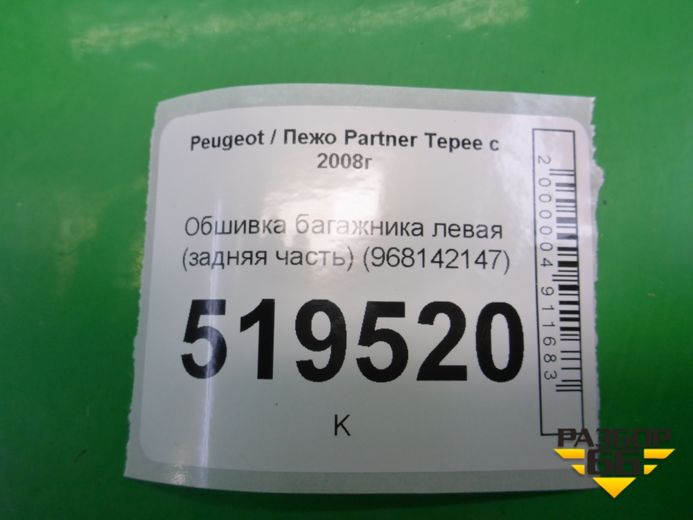 Обшивка багажника левая (задняя часть) (968142147) для Peugeot Partner Tepee с 2008г (Партнер Типпи) в Челябинске