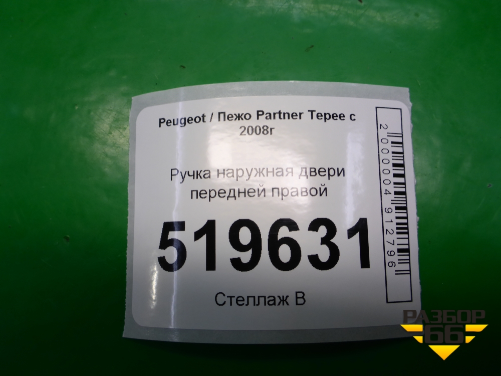 Ручка наружная двери передней правой для Peugeot Partner Tepee с 2008г (Партнер Типпи) в Челябинске