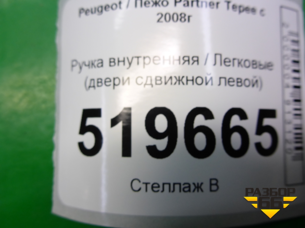 Ручка внутренняя (двери сдвижной левой) (9682100777) для Peugeot Partner Tepee с 2008г (Партнер Типпи) в Челябинске