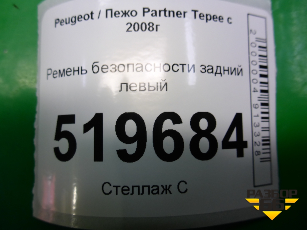 Ремень безопасности задний левый для Peugeot Partner Tepee с 2008г (Партнер Типпи) в Челябинске