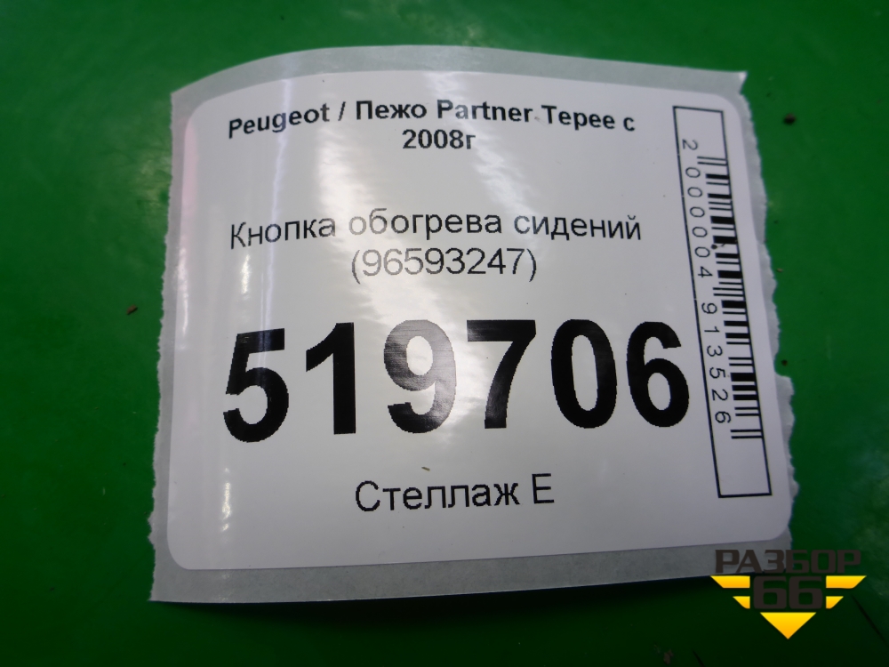 Кнопка обогрева сидений (96593247) для Peugeot Partner Tepee с 2008г (Партнер Типпи) в Челябинске