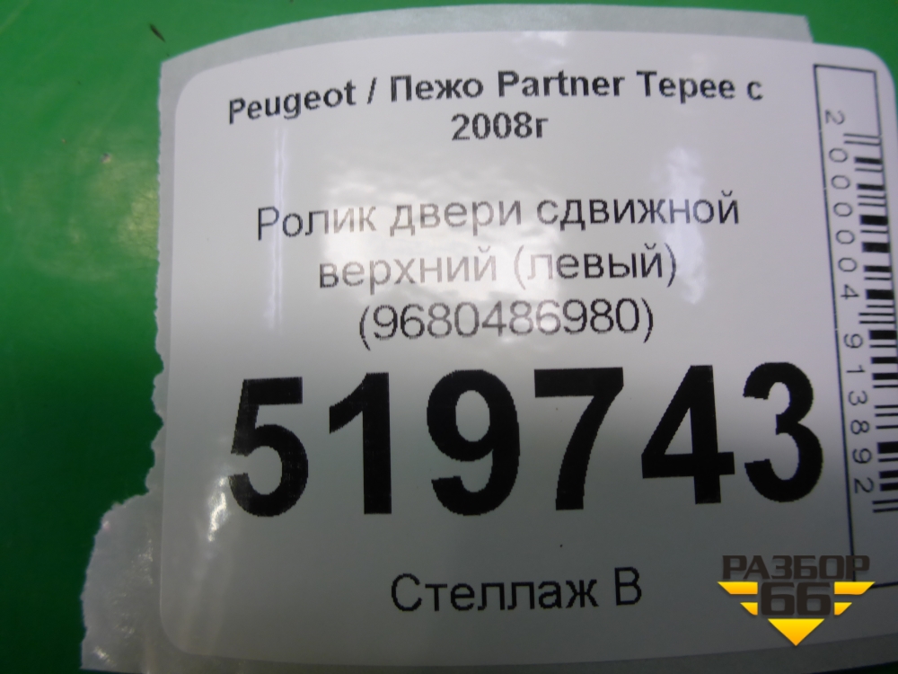 Ролик двери сдвижной верхний (левый) (9680486880) для Peugeot Partner Tepee с 2008г (Партнер Типпи) в Челябинске