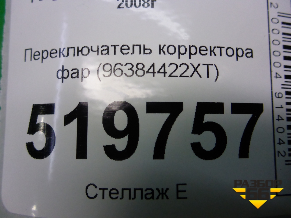Переключатель корректора фар (96384422XT) для Peugeot Partner Tepee с 2008г (Партнер Типпи) в Челябинске