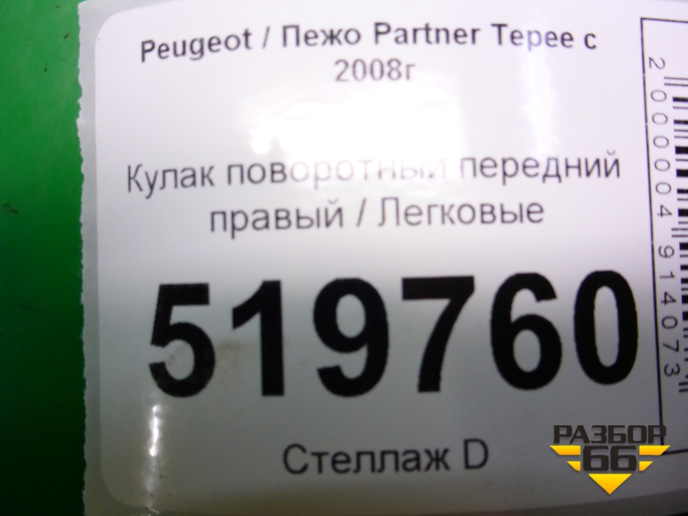 Кулак поворотный передний правый (с датчиком) для Peugeot Partner Tepee с 2008г (Партнер Типпи) в Челябинске