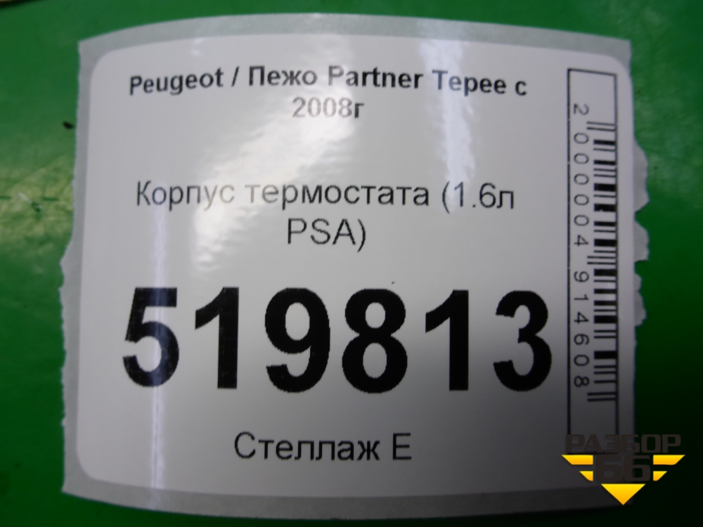 Корпус термостата (1.6л PSA) (9647265980) для Peugeot Partner Tepee с 2008г (Партнер Типпи) в Челябинске