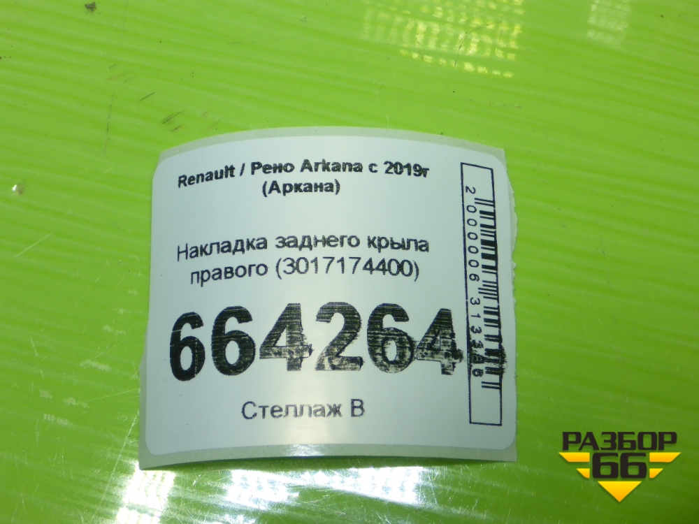 Накладка заднего крыла правого (3017174400) для Renault Arkana с 2019г (Аркана) в Челябинске
