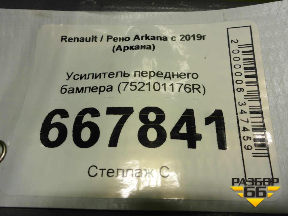 Усилитель переднего бампера (752101176R) для Renault Arkana с 2019г (Аркана) в Челябинске