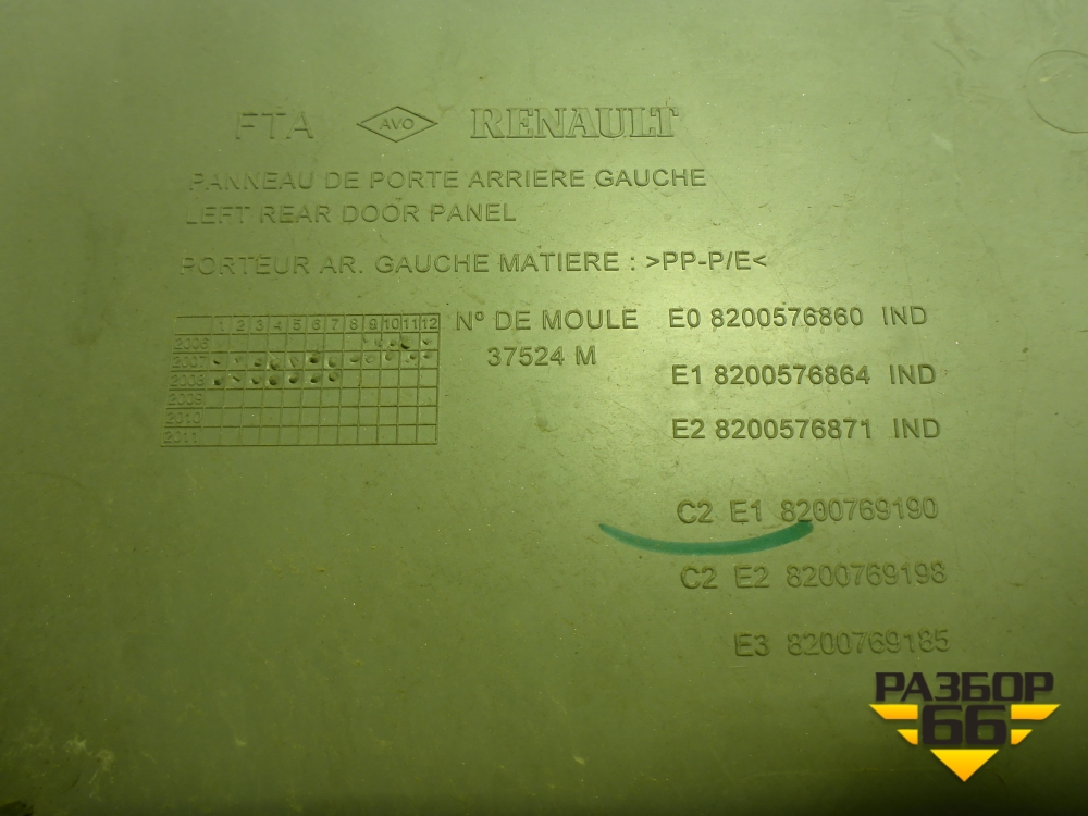 Обшивка двери задней левой под механику (до 2009г) (8200576860) для Renault Logan с 2004-2015г (Логан) в Челябинске