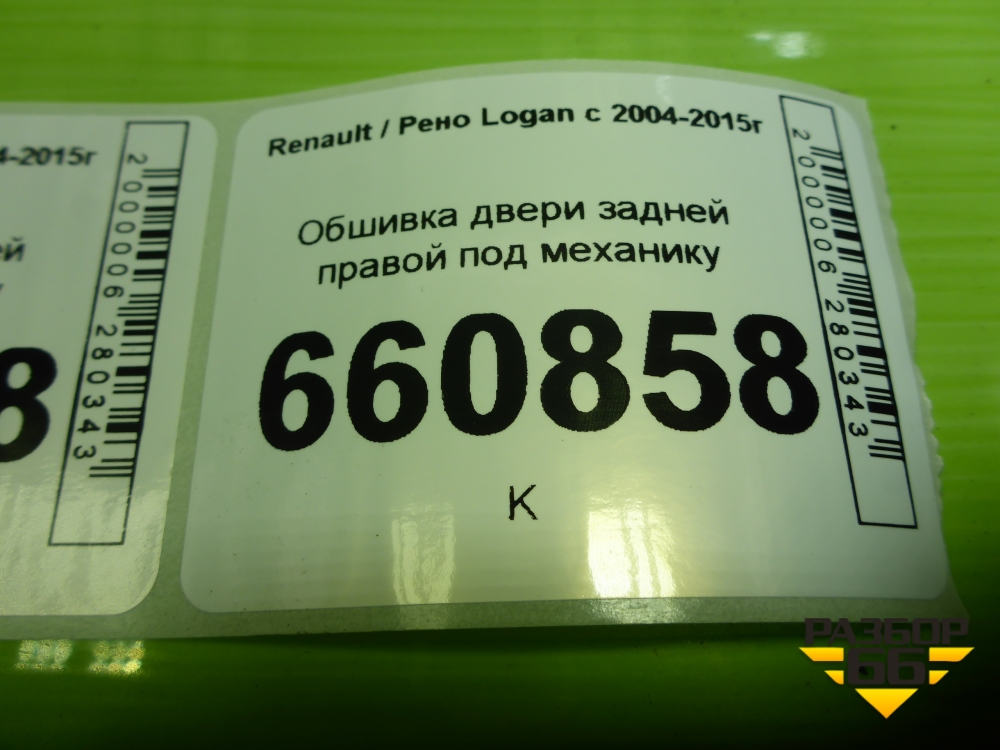 Обшивка двери задней правой под механику (до 2009г) (8200576862) для Renault Logan с 2004-2015г (Логан) в Челябинске