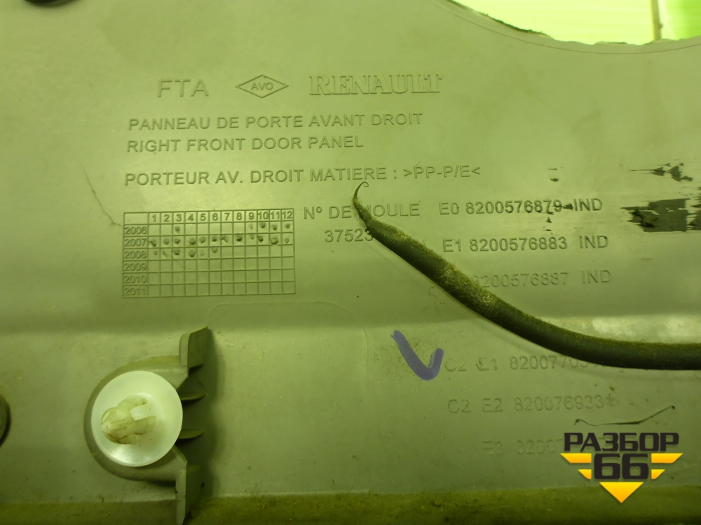 Обшивка двери передней правой под механику (до 2009г) (8200576879) для Renault Logan с 2004-2015г (Логан) в Челябинске
