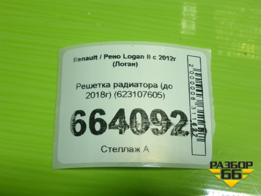 Решетка радиатора (до 2018г) (623107605) для Renault Logan II с 2012г (Логан) в Челябинске
