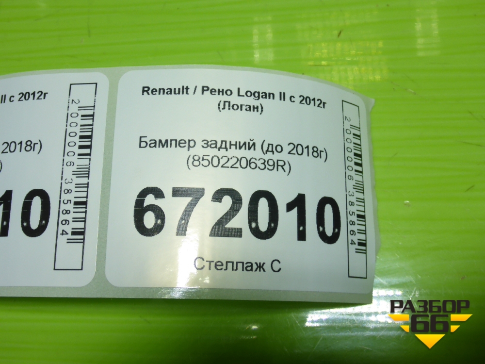 Бампер задний (до 2018г) (850220639R) для Renault Logan II с 2012г (Логан) в Челябинске