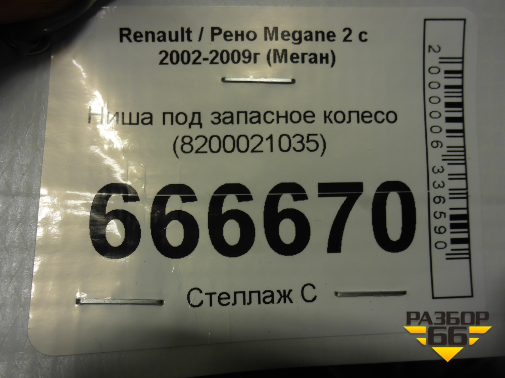 Ниша под запасное колесо (8200021035) для Renault Megane 2 с 2002-2009г (Меган) в Челябинске