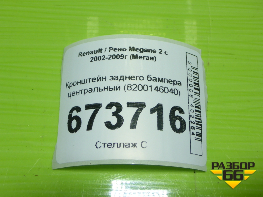 Кронштейн заднего бампера центральный (8200146040) для Renault Megane 2 с 2002-2009г (Меган) в Челябинске